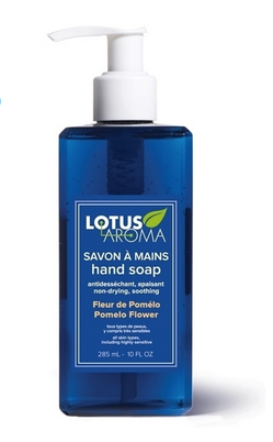 Savon à mains Fleur de Pomélo, Lotus Aroma, 15$, dans la plupart des pharmacies et certains magasins d’alimentation naturelle