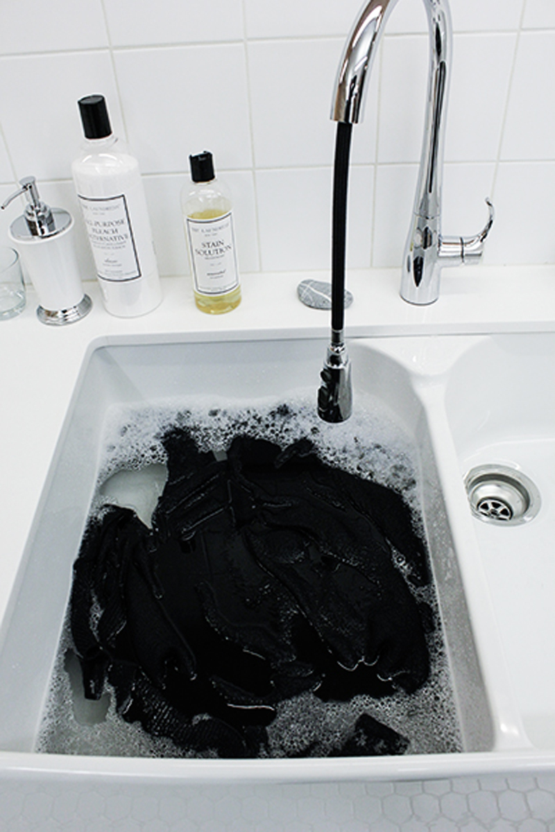Les délicates fibres naturelles demandent des soins particuliers, notamment en termes de savon. L’idéal demeure d’utiliser un produit fabriqué à partir d’ingrédients naturels, plus doux et moins agressifs – mais pas de panique, les vêtements ne seront pas ruinés si on utilise son détergent habituel. Pour la même raison, il est