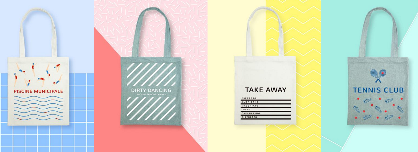 Déjà, un des modèles (Piscine municipale) est épuisé, et il ne reste, au moment de publier ce billet, que quelques pièces des trois autres sacs. Chaque cabas porte le nom d’un homme, les «amis de Marlone», concept qui s’avère être un clin d’oeil comique à des personnages, fictifs ou encore bien réels. Par exemple, le sac Dirty Dancing porte le nom de Johnny, alors que le cabas Roger (Federer?) est illustré de… raquettes de tennis.