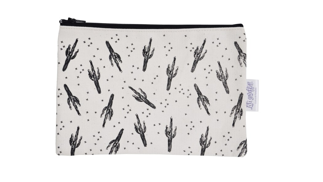 Dans ses ateliers montréalais, Lili graffiti décore de menus objets avec ses dessins au graphisme étudié. Parmi les accessoires que la créatrice lance pour la rentrée, notons les trousses en lin, parfaites pour ranger les crayons de couleur. Le petit plus : elles sont bien solides et promettent de traverser les saisons.