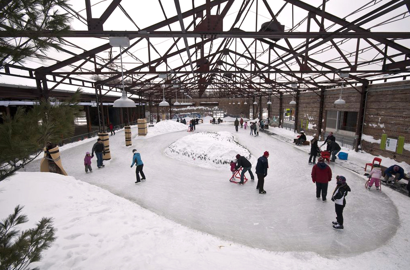 Pourquoi donc ne pas s’inspirer du Evergreen Brick Works, projet torontois primé à maintes reprises (et réalisé avec le réputé architecte paysagiste montréalais Claude Cormier), où on a conservé une ossature d’acier similaire dans un ancien complexe industriel pour en faire un site récréotouristique quatre saisons?