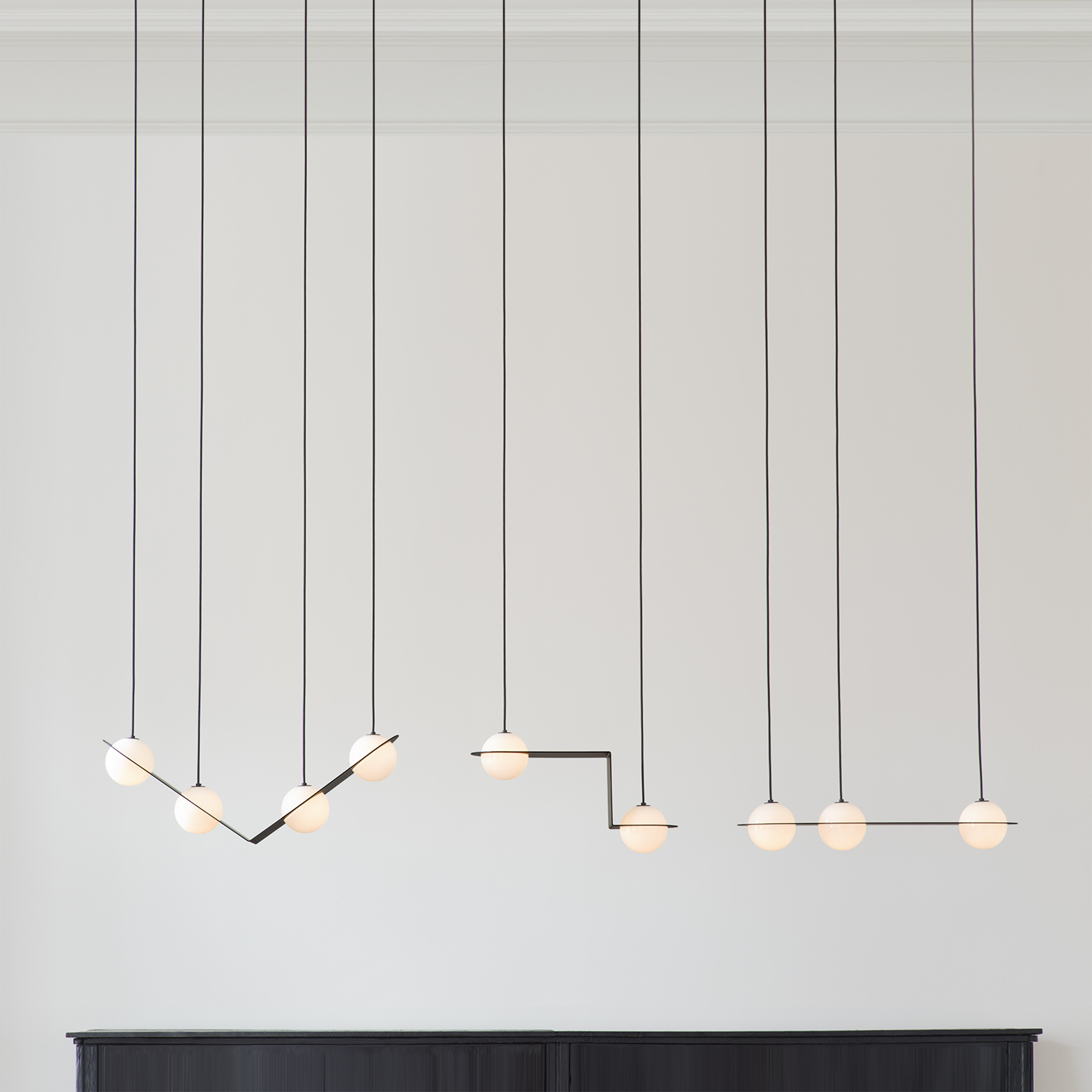 Élément-vedette de cette collection résolument contemporaine? Le globe opalin classique, fabriqué grâce au savoir-faire d’un souffleur de verre québécois. «Notre travail de recherche s’est porté sur la surface et la forme, le globe faisant fonction de lien», a expliqué par voie de communiqué Samuel Lambert, directeur de création et fondateur de Lambert & Fils.