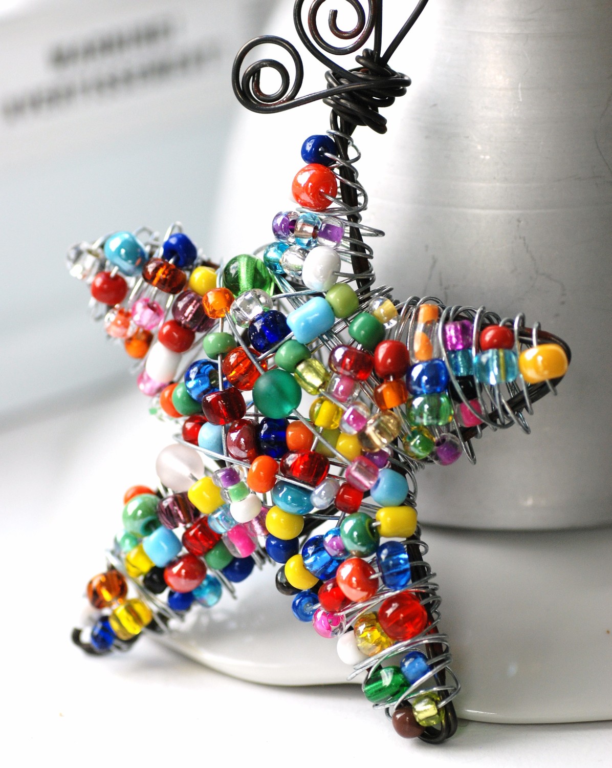 Étoile en billes de verre et en fil de fer, WildWomanJewelry, 40$ sur Etsy