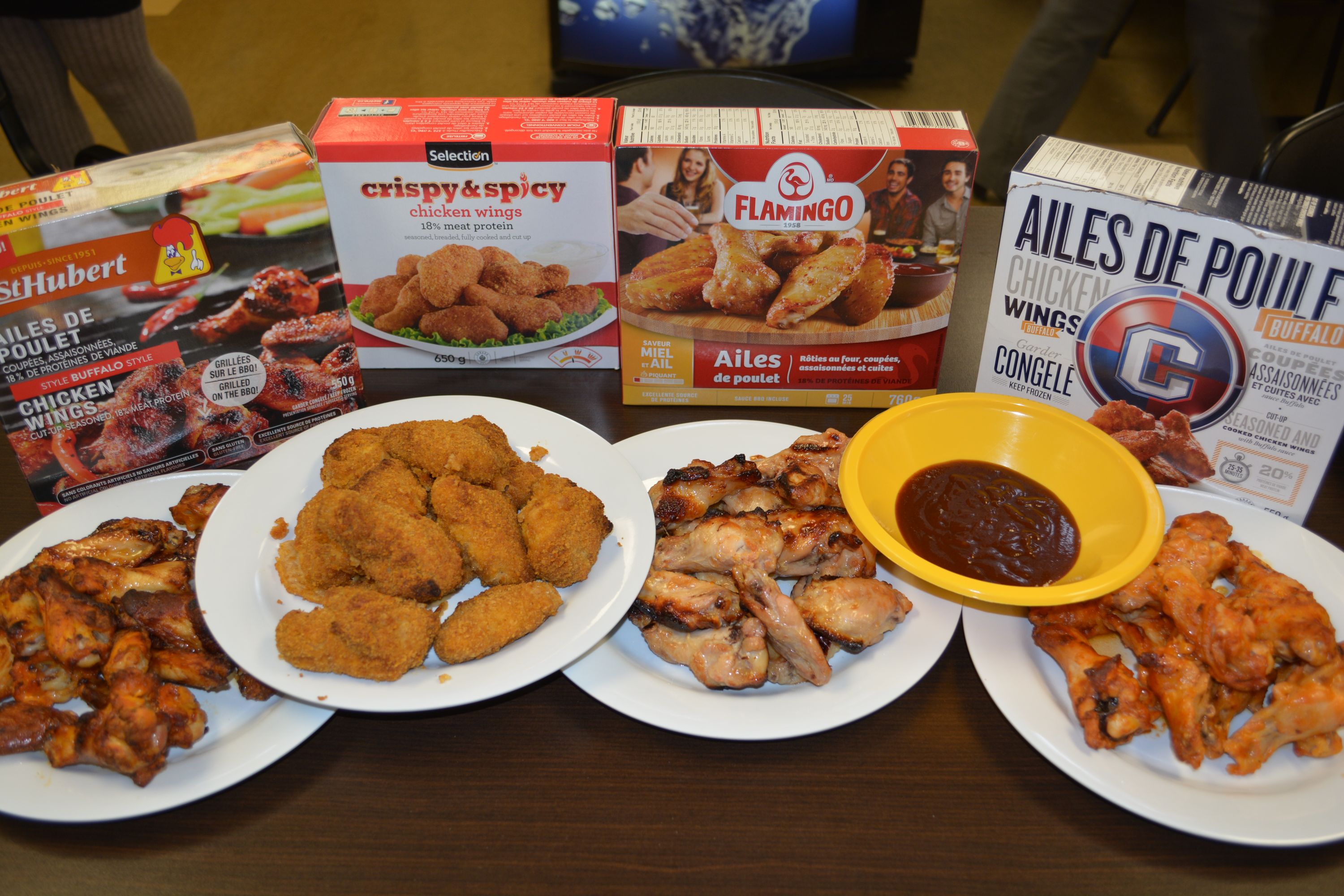 Quatre marques bien connues ont été choisies pour la dégustation: les ailes de poulet style Buffalo de St-Hubert, les ailes de poulet croustillantes et épicées de marque Selection, les ailes de poulet Flamingo à saveur miel et ail et les ailes de poulet Buffalo de la Cage aux sports. Les goûteurs devaient évaluer plusieurs critères. Au menu, le goût et la texture, mais également l’originalité et le côté salissant.