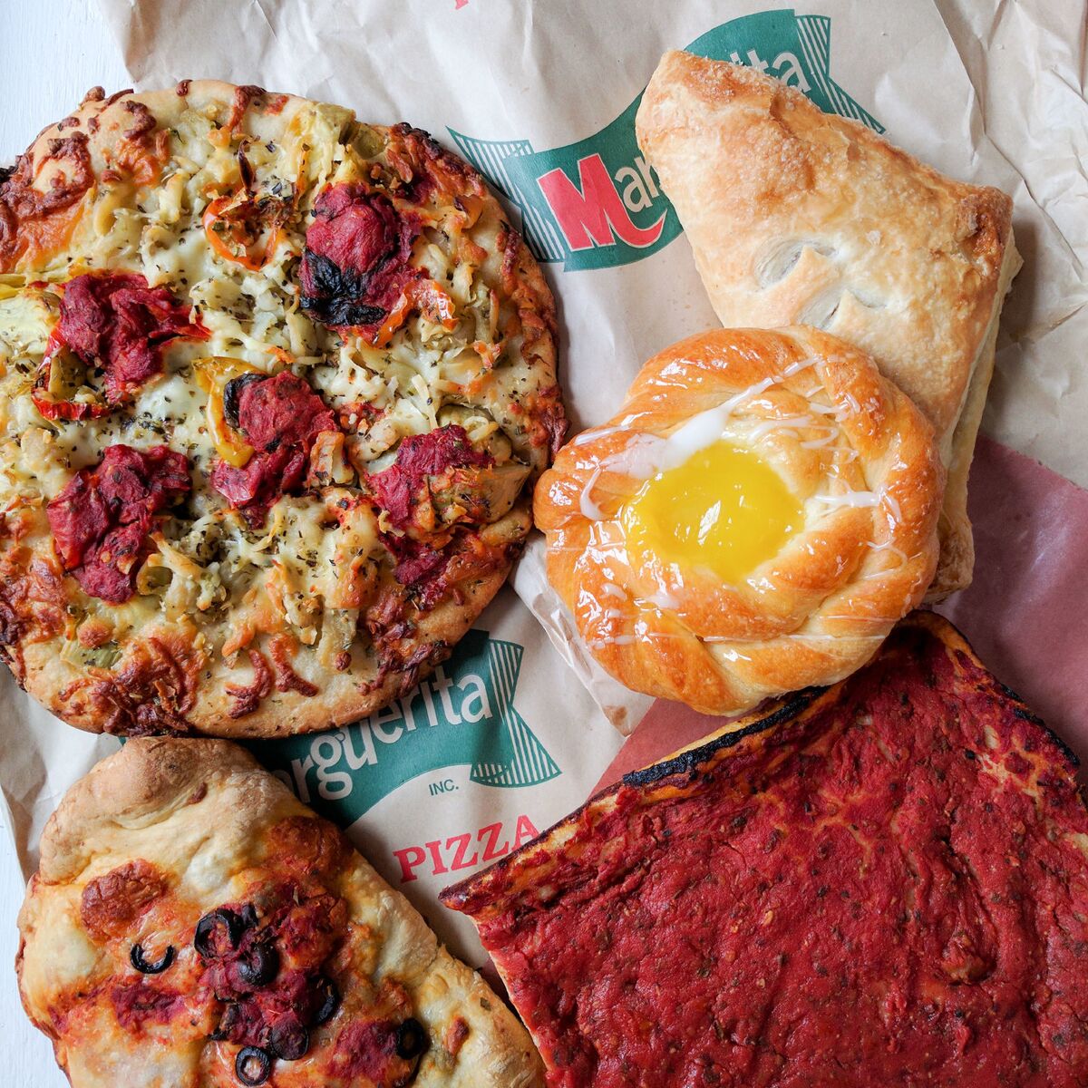 Vous savez, la pizza carrée avec une croûte épaisse? Oui, celle-là. Je ne sais pas si vous êtes comme moi, mais de la pizza aux tomates, j’en ai mangé dans ma vie. Et celle du Marguerita est tout simplement supérieure.