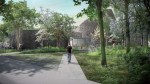 Cela dit, la comparaison avec notre planétarium s’arrête là. Plutôt que d’être plongé dans un environnement aussi minéralisé et austère que celui de notre parc olympique, le planétarium de Strasbourg sera implanté dans un grand jardin verdoyant. Au lieu de miser sur l’aluminium pour l’enveloppe extérieure, de la brique grise, rappelant une texture de pierre, a été privilégiée pour venir s’agencer avec la maçonnerie des bâtiments voisins.