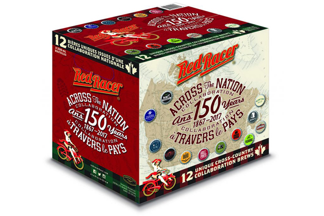 La caisse de 12 bières nommée Collaboration à travers le pays est l’initiative de la brasserie Central City Brewers, située à Surrey en Colombie-Britannique, qui brasse les bières Red Racer.