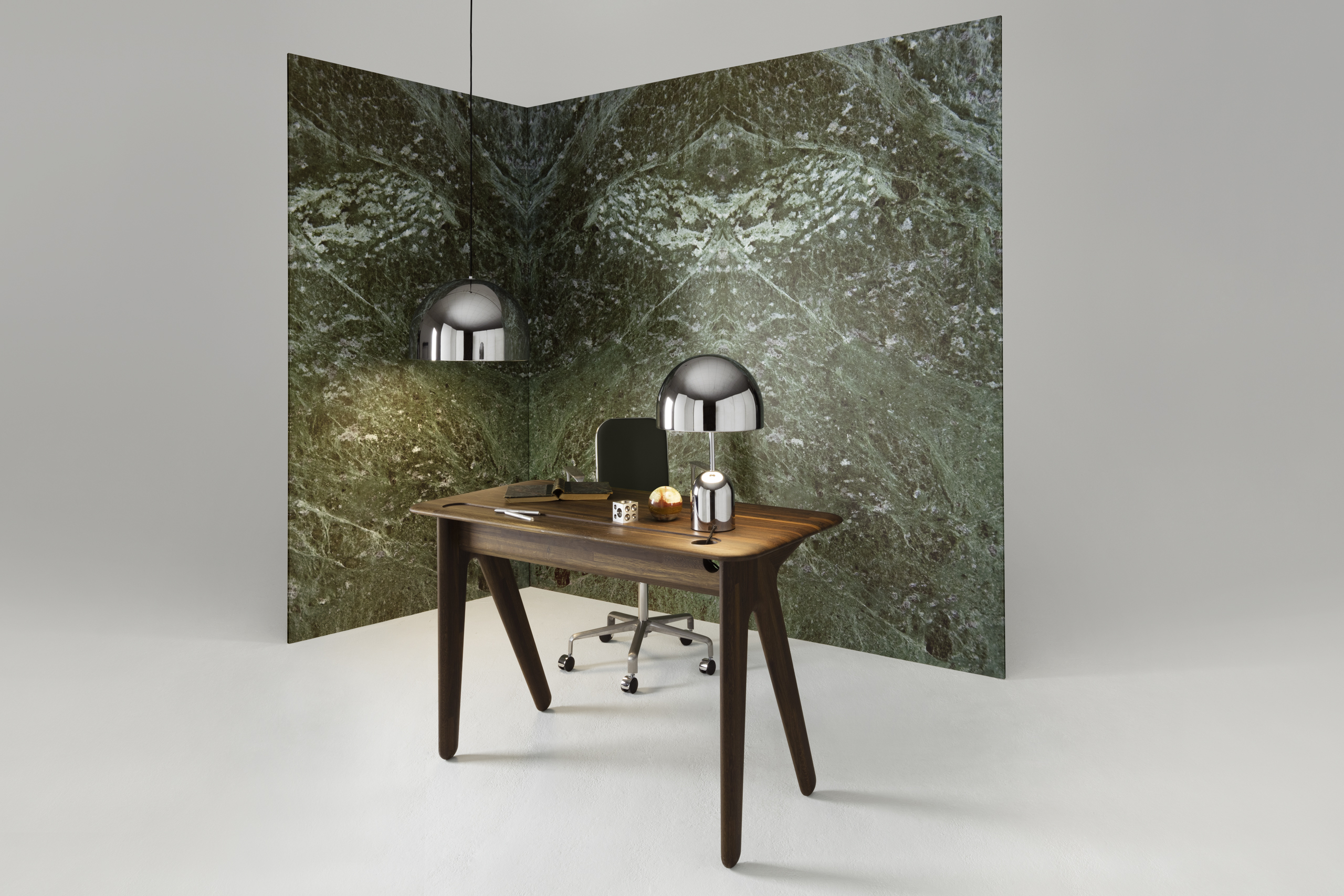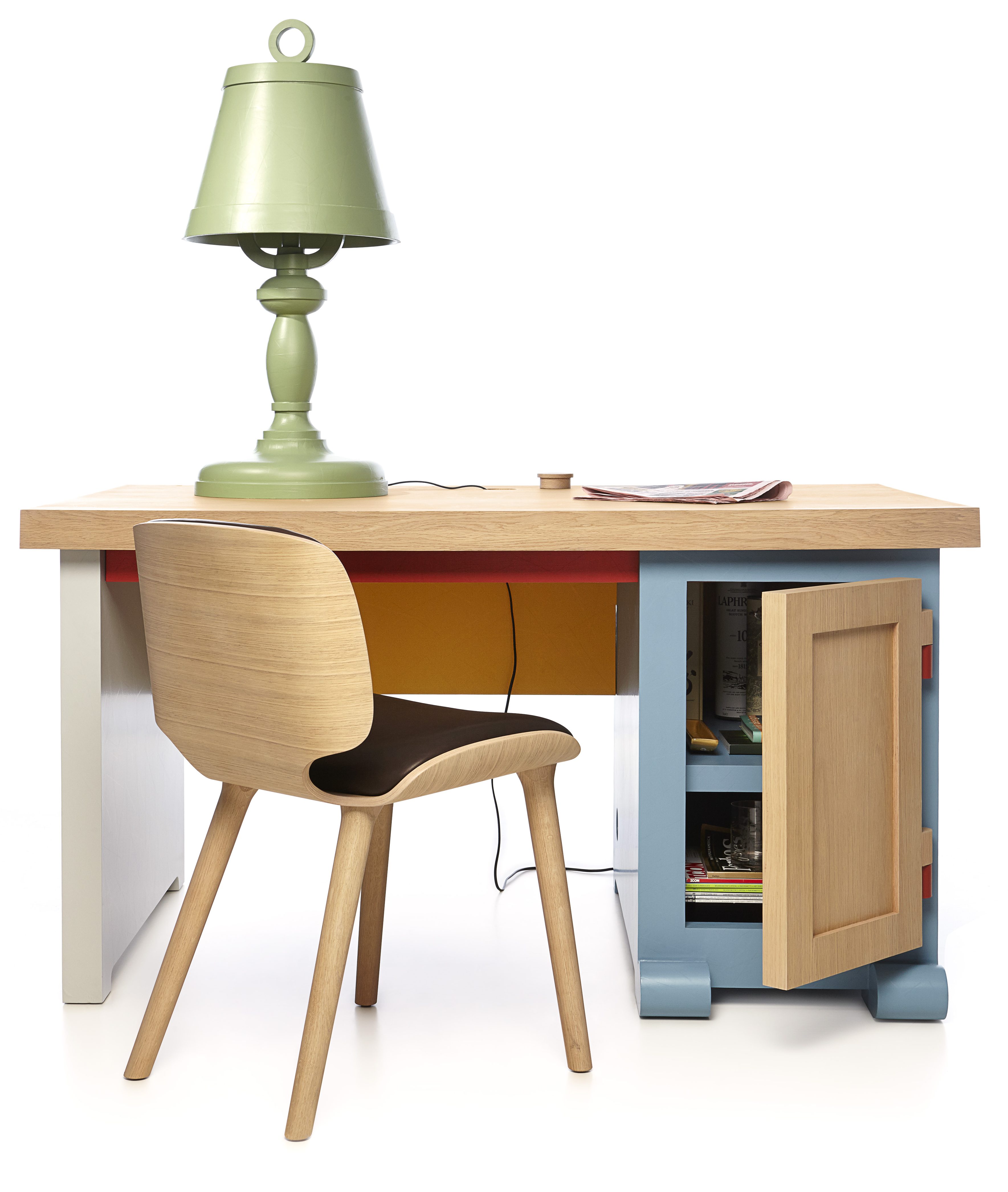 Le designer britannique Tom Dixon est allé cherché du côté des bureaux des écoles victoriennes pour donner naissance au Slab desk. Fait en bois de chêne massif, il gagne en modernité avec des contours arrondis. Le trou autrefois dédié à l’encrier est aujourd’hui conçu pour faire passer différents câbles.