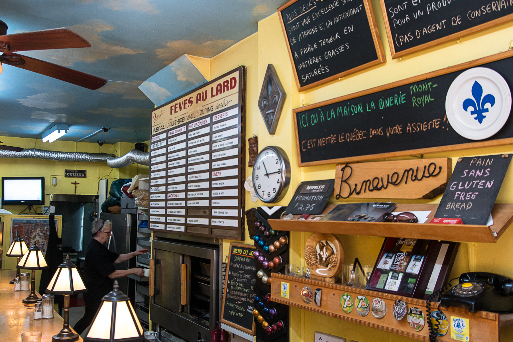 Le long comptoir de bois occupe presque tout l’espace de l’étroit restaurant de style diner de l’avenue du Mont-Royal. Ça sent les œufs, la tourtière et les fèves au lard qui ont mijoté dans l’immense four en fonte du sous-sol datant de 1938, date d’ouverture de la Binerie.