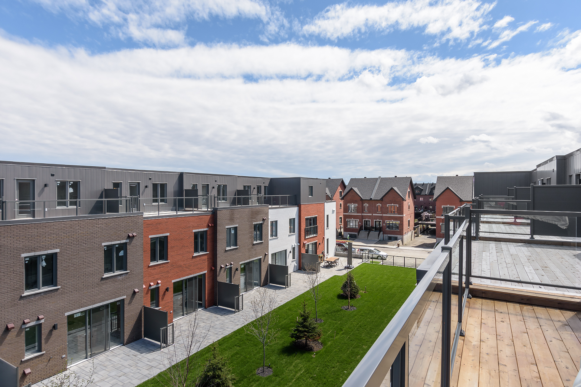 «C’est un lieu de vie très tranquille, on se sent au milieu de la nature», continue Mme Gulloti. Beaucoup d’espaces verts, d’arbres et une fontaine sont aussi aménagés sur le site, et chaque unité a sa petite cour privée et une terrasse sur le toit.