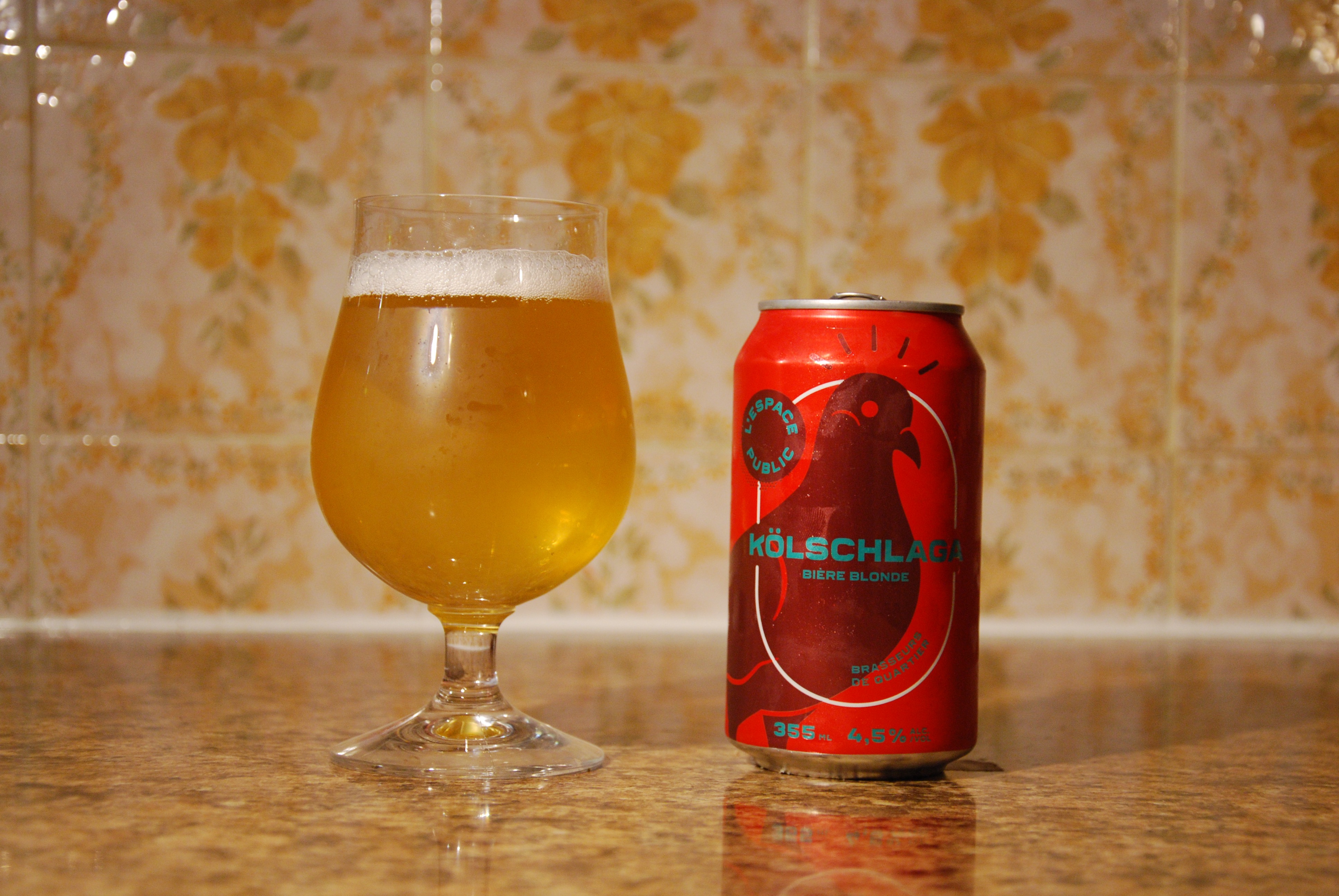 L’Espace public produit des bières en cannette depuis un peu plus d’un an, mais il aura fallu attendre la quatrième de la gamme régulière pour avoir autre chose que des bières sures. C’est avec une kölsch – style allemand originaire de Cologne – qu’on se lance dans le «non sur». Il s’agit de la première bière d’une nouvelle gamme de produits, nous dit-on. En raison de sa maturation à basse température et à sa levure caractéristique, la Kölschlaga présente un nez légèrement fruité, sans odeur de houblon. Son goût est marqué par la céréale, avec un trait subtil de sa levure fruitée. En fin de gorgée, il y a une petite pointe d’amertume. Au final, c’est une kölsch très légère et facile à boire. Une bière de tous les jours, quoi!