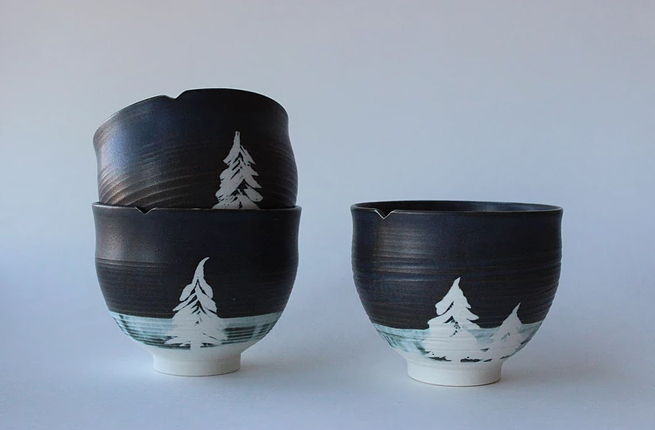 Ils sont délicats et minimalistes, avec un petit je-ne-sais-quoi qui en fait des pièces vraiment uniques. Bols à thé boréals, Gaële Céramiste, 23$
