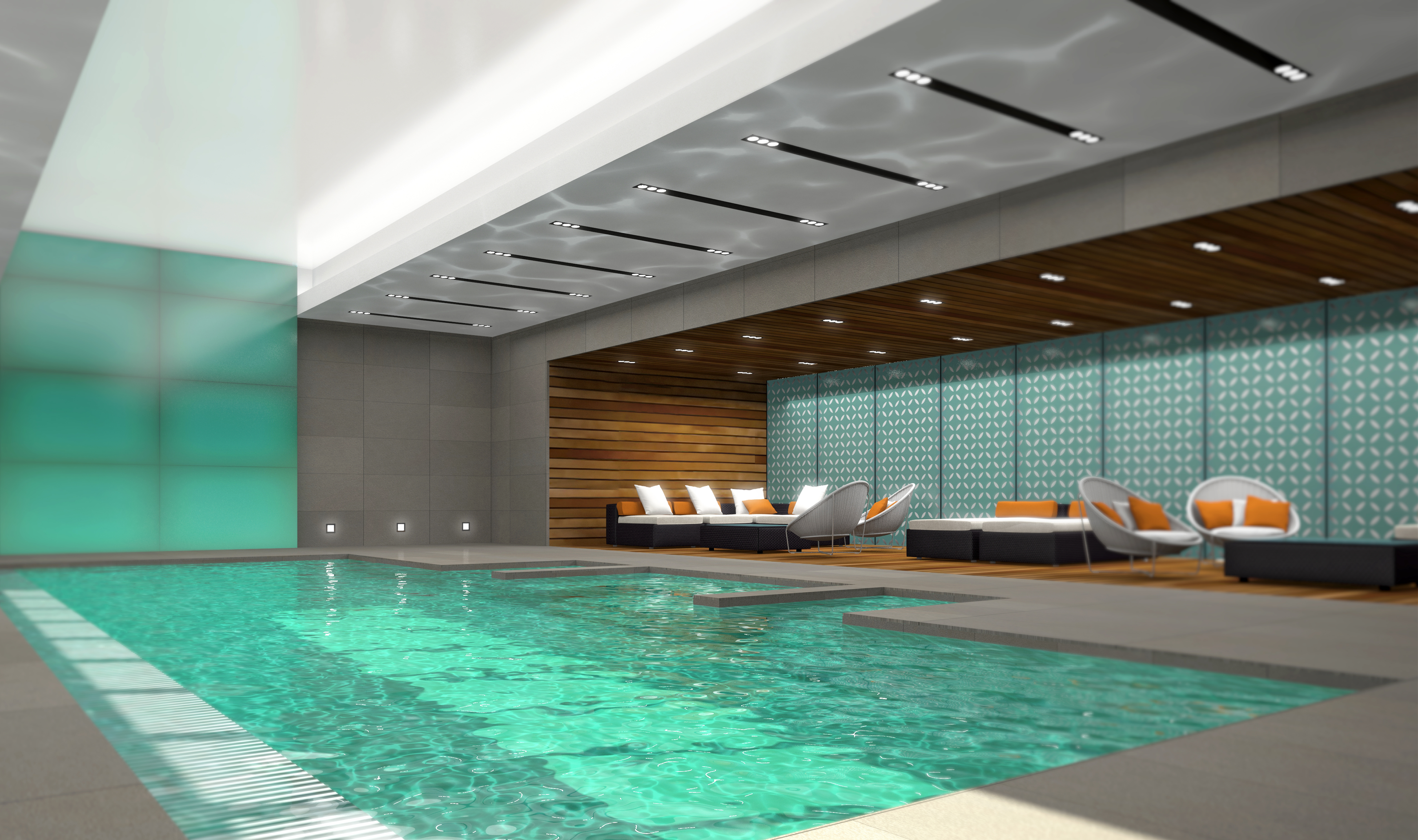 Ceux-ci pourront également profiter d’un gym avec une piscine intérieure. Cette dernière possèdera de grandes fenêtres qui seront ouvertes l’été, permettant aux propriétaires de passer rapidement et facilement de la terrasse commune à l’eau.