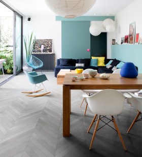 Cette porcelaine émaillée italienne confère un style tout à fait actuel aux planchers et aux dosserets, en particulier quand on opte pour le format Chevron.