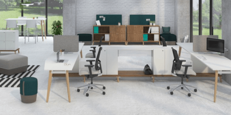 Ce mobilier de bureau «propose un véritable mode de vie professionnel», clame le fabricant, le Groupe Lacasse. Spécialement conçu pour les espaces à aire ouverte,