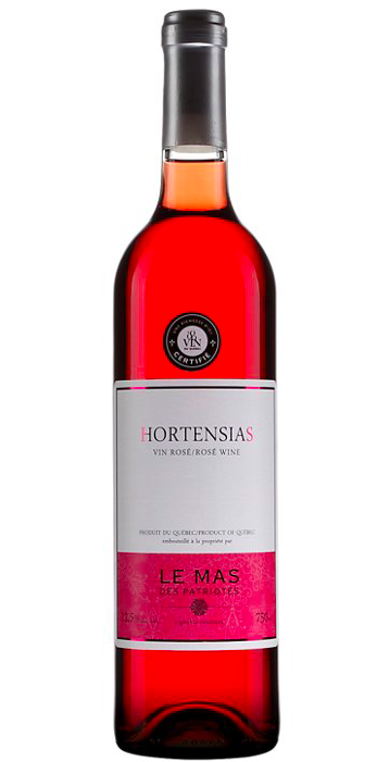«Fait à base du cépage hybride sainte-croix, le Hortensias du Mas des Patriotes, vignoble situé à Saint-Jean-du-Richelieu, est un parfait rosé d’apéro, à boire bien frais. Fruité, avec des arômes de fraise, il possède une belle acidité en fin de bouche.»