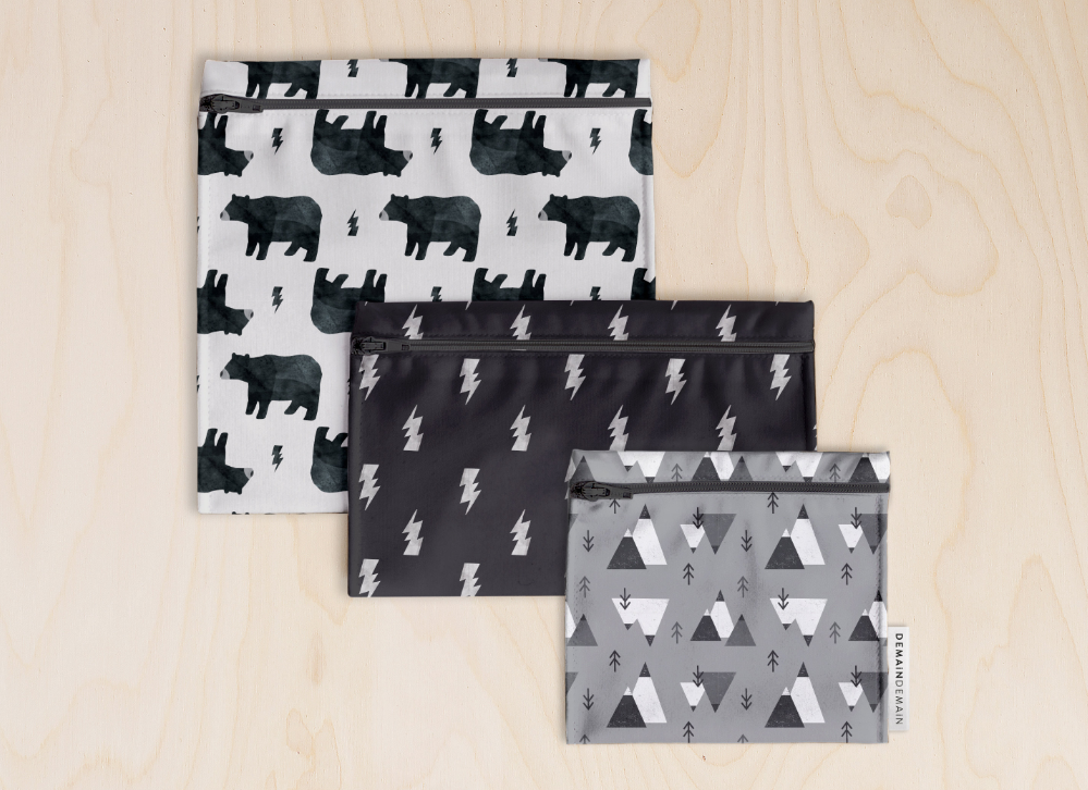 Les sacs à collations réutilisables sont devenus indispensables. D’abord, plusieurs écoles encouragent (voire obligent) les élèves à éviter les emballages jetables dans leurs lunchs. Ensuite, il s’agit d’une belle manière de sensibiliser les enfants à l’importance de l’environnement et de chacun de nos gestes au quotidien. Enfin, ce qui ne gâche rien, ces modèles créés à Laval proposent une variété de motifs et de coloris tendance. Même les tissus sont fabriqués au Québec!