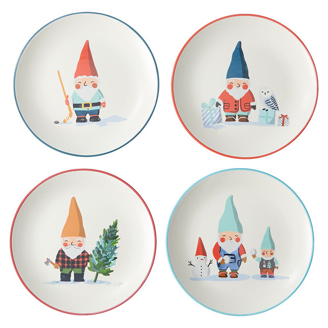 Les nains de jardin sont vraiment tendance cette année. On trouve des ornements pour sapin de Noël, certes, mais aussi des coussins, des napperons et même des assiettes à l’effigie de ces personnages féeriques.