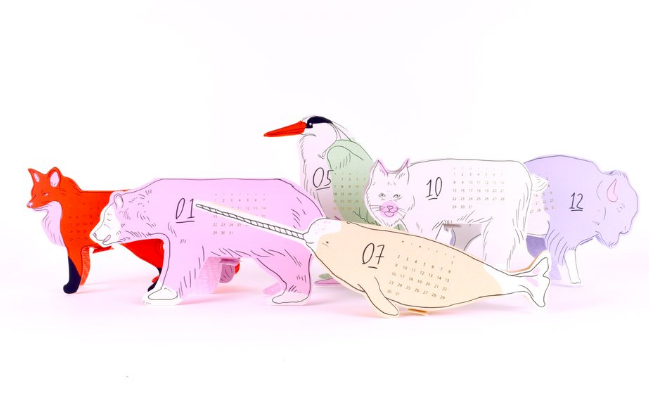 En 2019, l’entreprise de design montréalaise Baltic Club nous propose de passer l’année avec cet ours, ce renard, ce narval, ce héron, ce lynx et ce bison colorés. Pour les inconditionnels du papier.