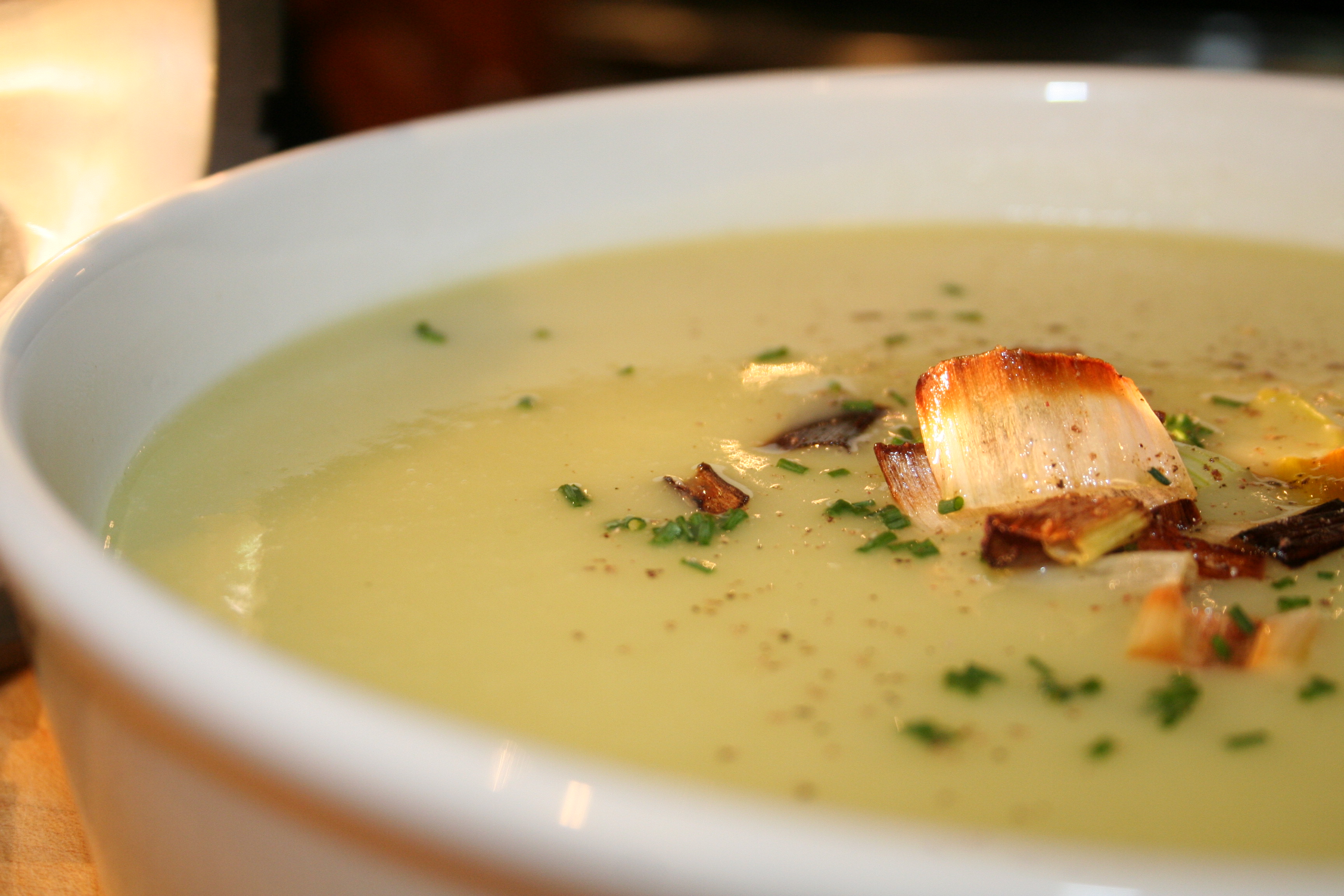 - Pour impressionner vos amis encore plus, vous pouvez servir ce potage saupoudré de morceaux de poireaux rôtis.
