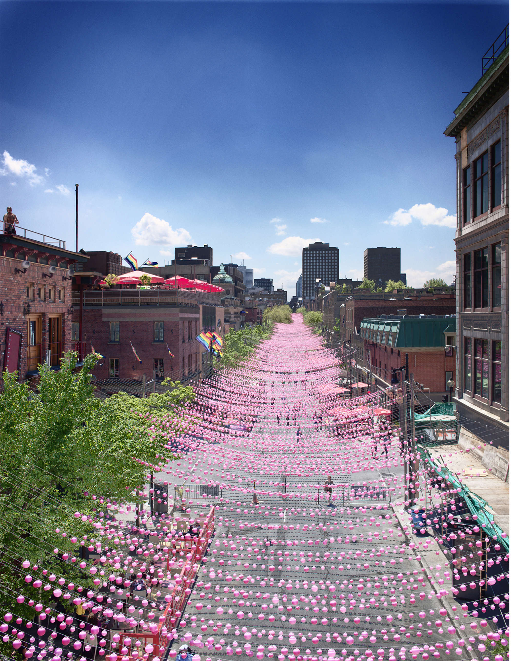 Qu’ont en commun la plage urbaine du Vieux-Montréal, les arbres fuchsia du Palais des congrès et les boules roses décorant le Village gai durant l’été?