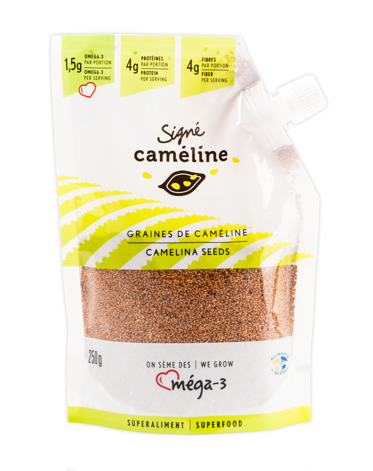 N’étant ni traitées, ni raffinées, les graines de caméline nous sont proposées sous leur forme la plus brute. «La demande s’est créée rapidement quand les plus grands chefs du Québec ont découvert et incorporé notre huile dans leurs recettes. Avant-gardistes, ils sont à la recherche des dernières découvertes gourmandes et des phénomènes nutritionnels émergents. Certains nous ont demandé s’ils pouvaient obtenir les graines brutes pour les cuisiner. C’est de là que nous est venue l’idée de les rendre accessibles à tous», explique Chantal Van Winden, présidente-directrice générale d’Oliméga.