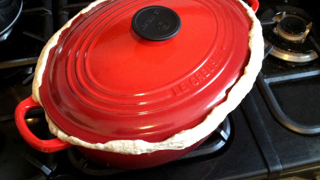 Dans ma rubrique de cette semaine, je vous explique ce que veut dire le terme «luter une cocotte.» C’est une technique de cuisson simple et efficace qui consiste à fermer hermétiquement une cocotte à l’aide d’une pâte (un lut). Il suffit de malaxer de la farine avec de l’eau jusqu’à l’obtention d’une pâte collante et épaisse, et d’en former un joint étanche sur le rebord de la casserole.