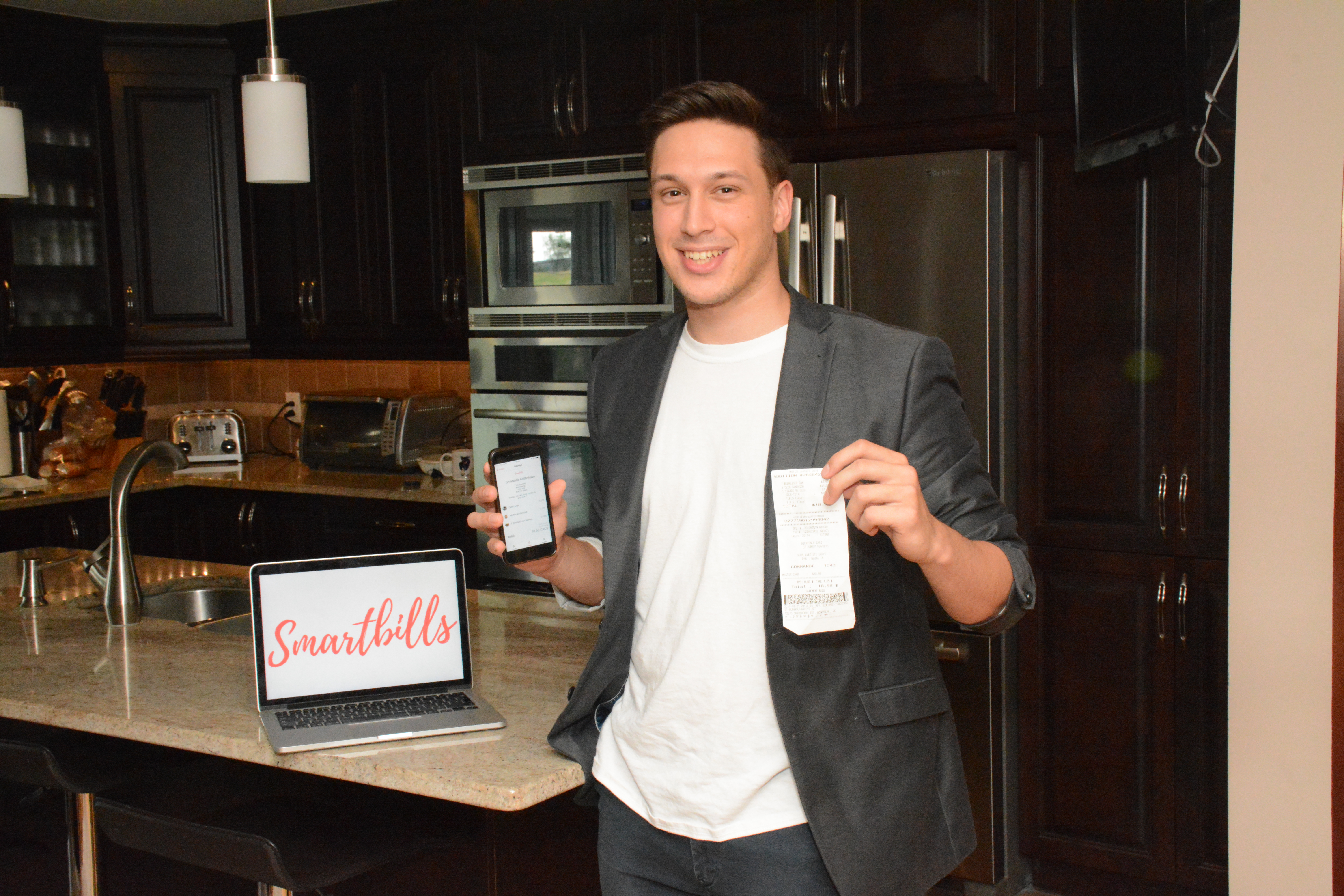 Quand j’ai commencé l’université, j’ai fondé un comité pour aider les associations étudiantes à développer des sites web et des applications mobiles, et à organiser des événements. C’est un peu là où mon côté entrepreneurial s’est développé. Au cours de ma première année, j’ai réalisé que la facture papier était vraiment inutile. Je la voyais être jetée tous les jours; même à la cafétéria de Polytechnique, il y a des centaines, voire des milliers de factures jetées chaque midi. Et je trouvais ça désolant. Ça prend beaucoup de nos ressources naturelles et en fin de compte, la facture est imprimée pour être jetée. Le côté innovant avec Smartbills, c’est qu’on peut envoyer toutes les factures dans un seul et même compte d’utilisateur, que ce soit une facture d’épicerie, de restaurant ou de commerce de détail. En ce moment, ça n’existe pas; la technologie est disponible, mais personne ne le fait. Donc, si on veut garder la facture, on doit la prendre en photo ou la recevoir par courriel, ce n’est pas vraiment pratique.