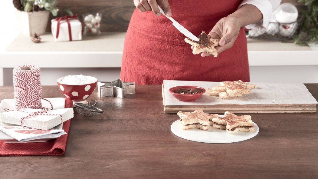- Superposer 2 étoiles, décorer avec du sucre glace et du Nutella et déguster immédiatement.