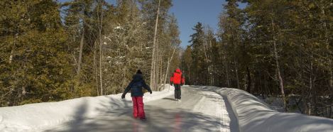 Admirer le paysage depuis les hauteurs n’est pas réservé aux skieurs. Certains sentiers sont accessibles en raquettes, comme ceux du parc régional des Sept-Chutes. Selon les parcours, vous pourrez découvrir la chute du Voile de la Mariée glacée, traverser une érablière ou encore apprécier la vue en haut du mont Brassard.