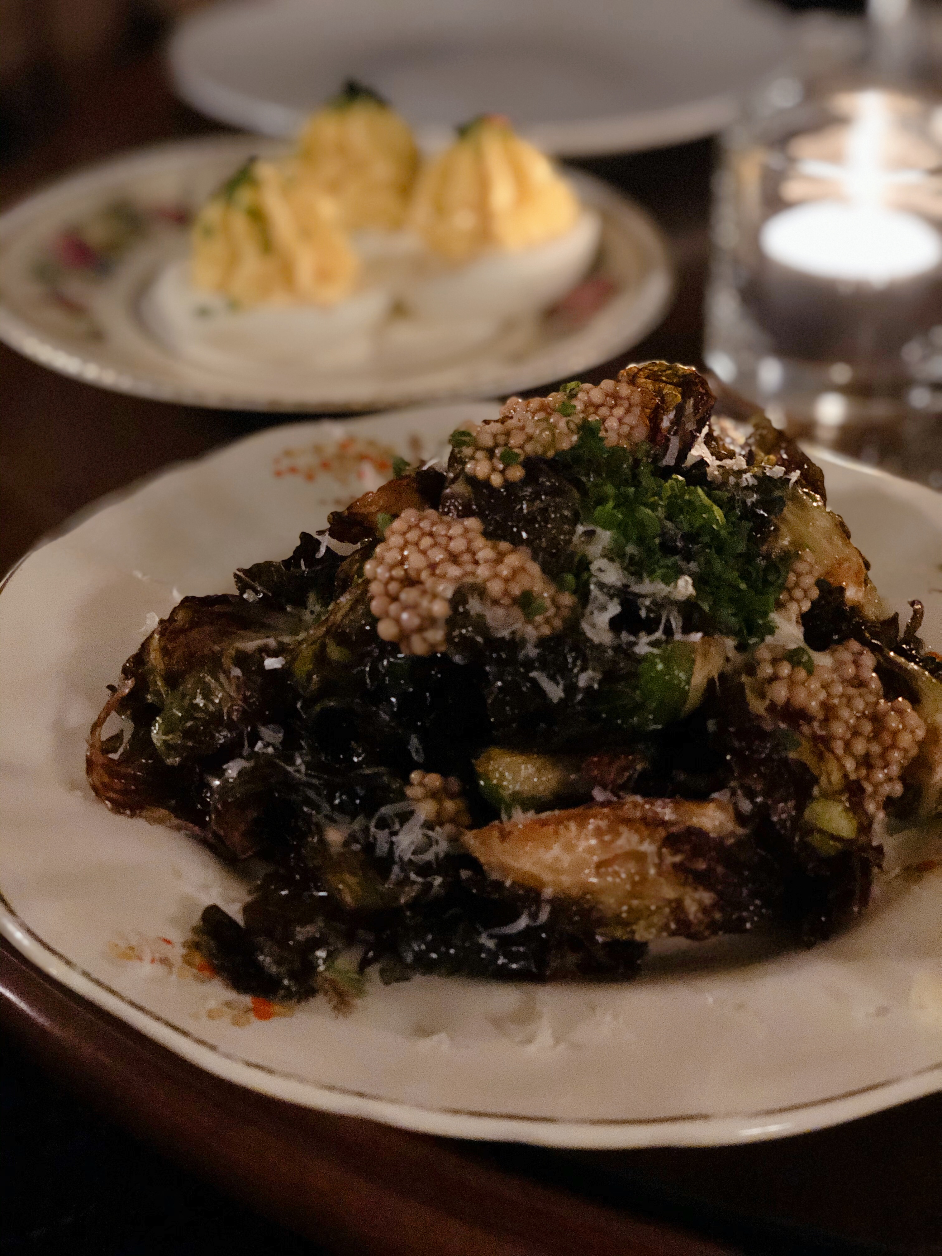 Derrière ses pianos, le chef Alex Collyer (Taverne sur le square, Bon Vivant) s’affaire à sortir des plats classiques et sans prétention: les œufs mimosas rehaussés d’un morceau d’oignon mariné et d’une petite cuillérée de caviar, le poisson du jour servi avec une sauce vierge ou encore la salade de choux de Bruxelles grillés recouverte d’une grosse cuillérée de graines de moutarde… La réussite des plats au Roseline réside dans la touche personnelle que le chef apporte à chacun d’eux. Côté sucré, c’est d’audace qu’il faut y aller en commandant l’omelette norvégienne flambée à la chartreuse.