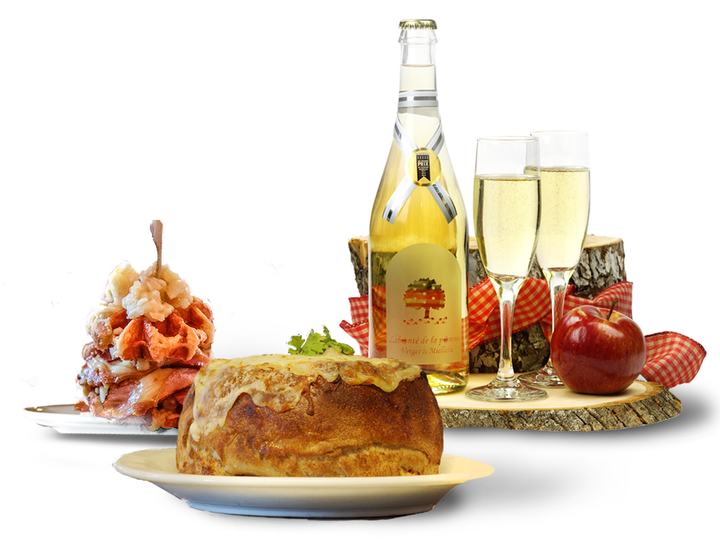 Le verger de Labonté de la Pomme est aussi une cabane à sucre unique en son genre, ou plutôt une cabane à pommes! Son Menu traditionnel rehaussé, le plus populaire, met le fruit du pommier et le terroir québécois à l’honneur, avec de bons produits locaux comme le fromage d’Oka. On peut le commander en ligne au prix de 32$ par adulte et de 16$ par enfant, puis le récupérer à la boutique du mercredi au dimanche.