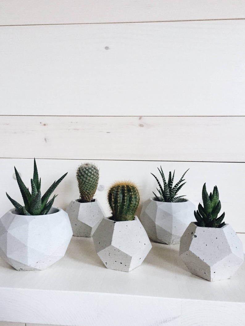 La cote d’amour pour les succulentes ne diminue pas et ces petites jardinières en béton les accueillent avec style; à la fois urbain/industriel et chaleureux. Faites à la main à Granby.