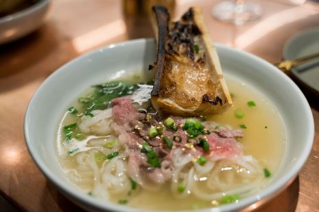 Comme les autres établissements du groupe, le Hang mise sur des ingrédients de luxe. Pensez bánh mì au foie gras, quoi. Le plat le plus emblématique de cet esprit est sans aucun doute le phở au bœuf Wagyu et à l’os à moelle. Non satisfait de ces ingrédients, le restaurant ajoute en plus de l’huile de truffe et des flocons d’or!