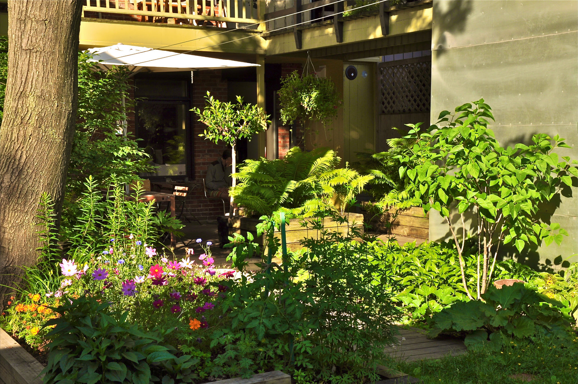 Dans certaines zones de la Petite Italie, comme entre les rues Bellechasse et Jean-Talon, où est située la Garconnière Bonetto, les terrains sont très profonds, ce qui offre beaucoup d’intimité aux résidants, se réjouit Antoine Bonetto. «On est à Montréal, et avoir une telle cour, c’est une richesse, ajoute-t-il. Les voisins arrière sont très loin.» Il bénéficie donc d’un garage (avec mur de blocs préservé – il a aussi été construit par le grand-père il y a de nombreuses années) et d’un vieux hangar jouxtant la maison dont il a consolidé la structure, en plus d’un bout de terrasse où se prélasser l’été venu.