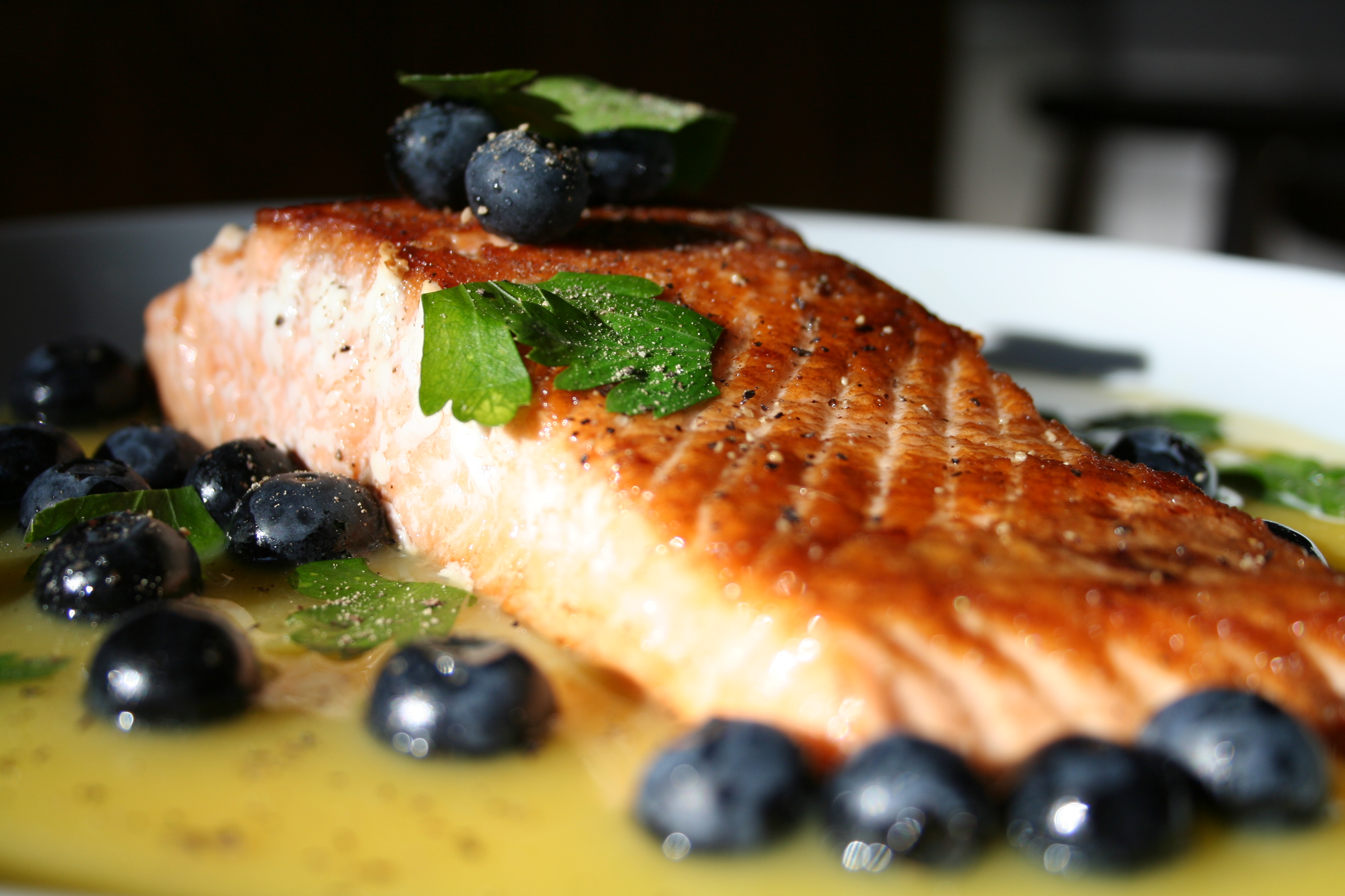 - Ajouter les bleuets et la ciboulette en toute fin de cuisson. Servir.
