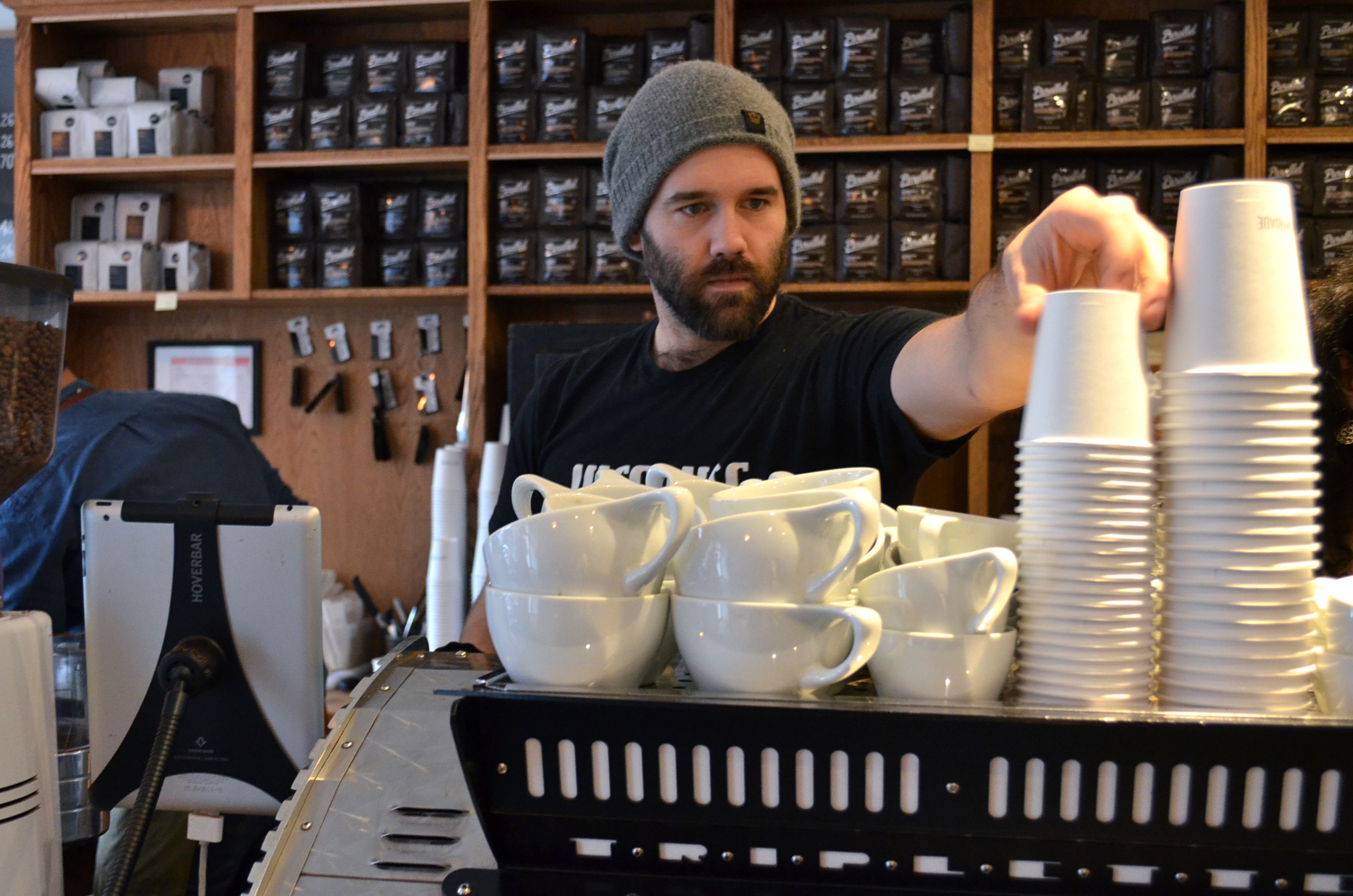 Anthony Benda est un perfectionniste. Chaque minute qu’il passe sur le plancher du Café Myriade lui sert à parfaire son art dans le but d’offrir un café toujours plus savoureux, avec les méthodes les plus efficaces qui soient. Quand il a ouvert son café, il y a cinq ans, Montréal était loin de surfer sur la troisième vague. Le natif de Vancouver établi à Montréal depuis près de neuf ans faisait office de pionnier et avait le désir de bousculer les habitudes. Attablé à son institution de la rue Mackay, MacBook devant lui et tuque grise vissée à la tête, Anthony Benda discute avec passion de clients qu’il voit presque chaque jour depuis cinq ans… et qui le poussent à s’améliorer. La volonté de proposer de nouvelles choses, il l’a toujours.