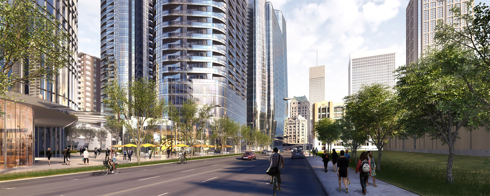 Je fais évidemment allusion, ici, à cette importante annonce de vendredi dernier durant laquelle le groupe a présenté la plus récente mise à jour de son plan de développement immobilier au cœur de Montréal. D’ici 2030, Cadillac Fairview prévoit avoir érigé pas moins de neuf gratte-ciel à proximité du Centre Bell, soit six à vocation résidentielle et trois dédiés au milieu des affaires.