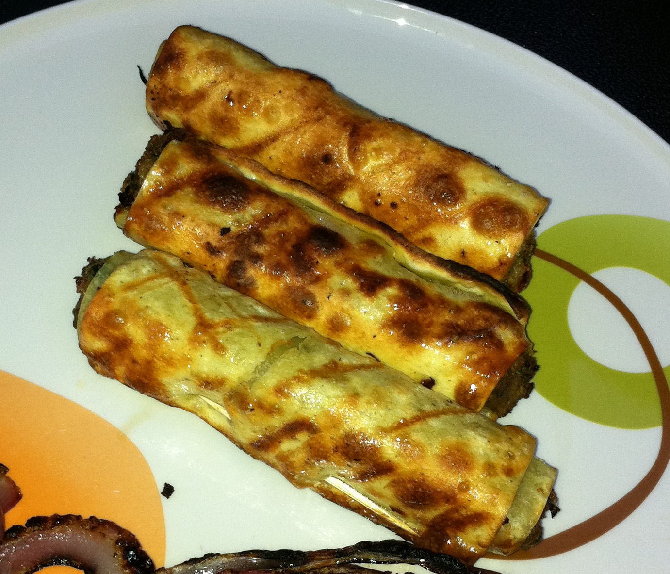 M. St-Pierre a élaboré une technique qui permet à ces cannellonis – farcis de viande, d’épinards, de tomates et de fines herbes – de survivre aux ardeurs des flammes. En résultent une pâte croustillante et un intérieur moelleux.