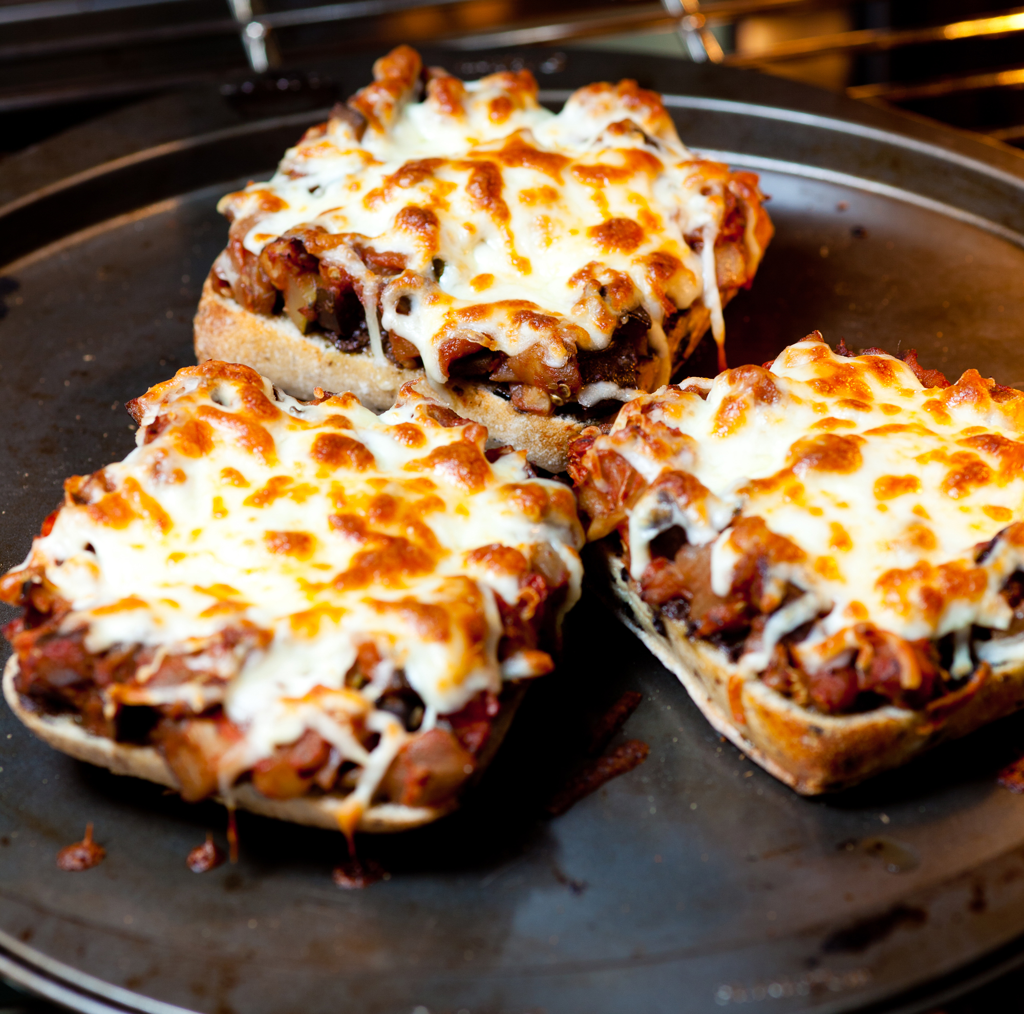 Nous sommes au début du XXe siècle, des ouvriers siciliens viennent acheter leur repas du midi chez cet épicier: pain, charcuteries, fromages, légumes marinés. Un midi, pour transformer ce repas encombrant en plat pratique et facile à manger, l’épicier leur aurait proposé de placer les garnitures entre deux moitiés de pain. Plusieurs couches de charcuteries italiennes sont donc superposées en alternance avec des légumes marinés et du fromage. Si possible, on chauffe quelque peu la préparation au four pour permettre au fromage de fondre. Un régal, qu’on peut aussi préparer avec des petits pains croûtés ordinaires!