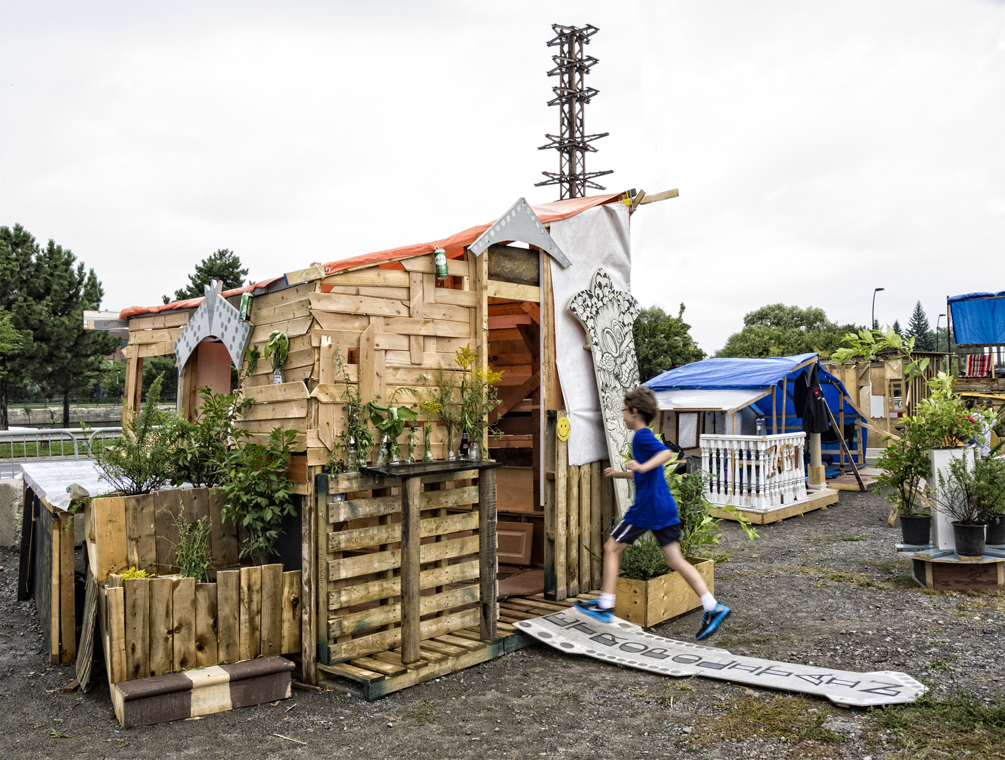 Plongé au cœur d’un vieux secteur industriel du Sud-Ouest, le site de l’évènement s’apparentait à un miniquartier improvisé de squatteurs, fabriqué à partir de matériaux dénichés à droite et à gauche. Additionnée à un temps gris et à quelques graffitis, la scène urbaine était plutôt singulière en sol montréalais.