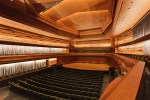 Inauguré le week-end dernier sur le campus de l’Université Queen’s, le nouvel espace culturel de 45 M$ était sur la table à dessin depuis presque six ans, à la suite d’une compétition d’architecture. Un échéancier relativement long pour l’envergure du projet, mais qui aura certainement valu l’attente. Notre arrivée dans l’édifice est marquée par un hall entièrement vitré, offrant un sublime panorama sur le lac Ontario. Des lamelles de bois, récupérées d’un bâtiment qui se trouvait sur le site, viennent compléter l’espace. Une fois plongé dans la salle de spectacle de 566 sièges, on se laisse rapidement séduire par son atmosphère très intime, avec ses chaleureuses strates de bois couleur chocolat.