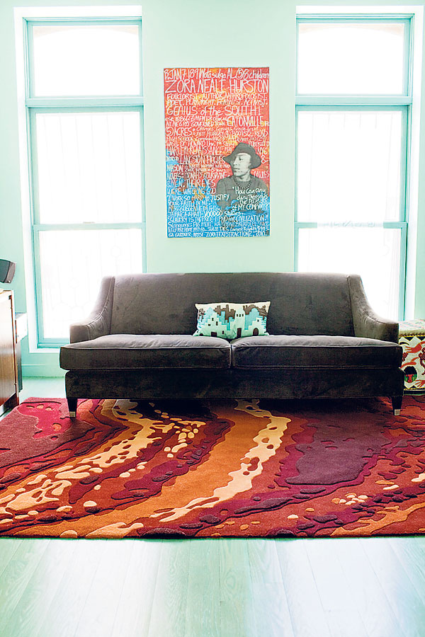 Malene Barnett, derrière la compagnie de tapis new-yorkaise Malene B, rêve de déménager dans les Caraïbes. «Je n’ai pas décidé où exactement encore, explique-t-elle. Jusqu’à ce que je le fasse, je veux vivre dans un environnement qui me donne l’impression d’y être déjà.» Son chez-elle est chaleureux et calme, et même sa porte d’entrée, d’un turquoise rappelant les mers du sud, tranche avec les pâtés de maison en briques rouges de son voisinage. «C’est ma couleur favorite, et j’aime la voir chaque jour, fait-elle valoir. C’est aussi une manière de me différencier, puisque je suis la seule à avoir une telle porte dans les environs.»