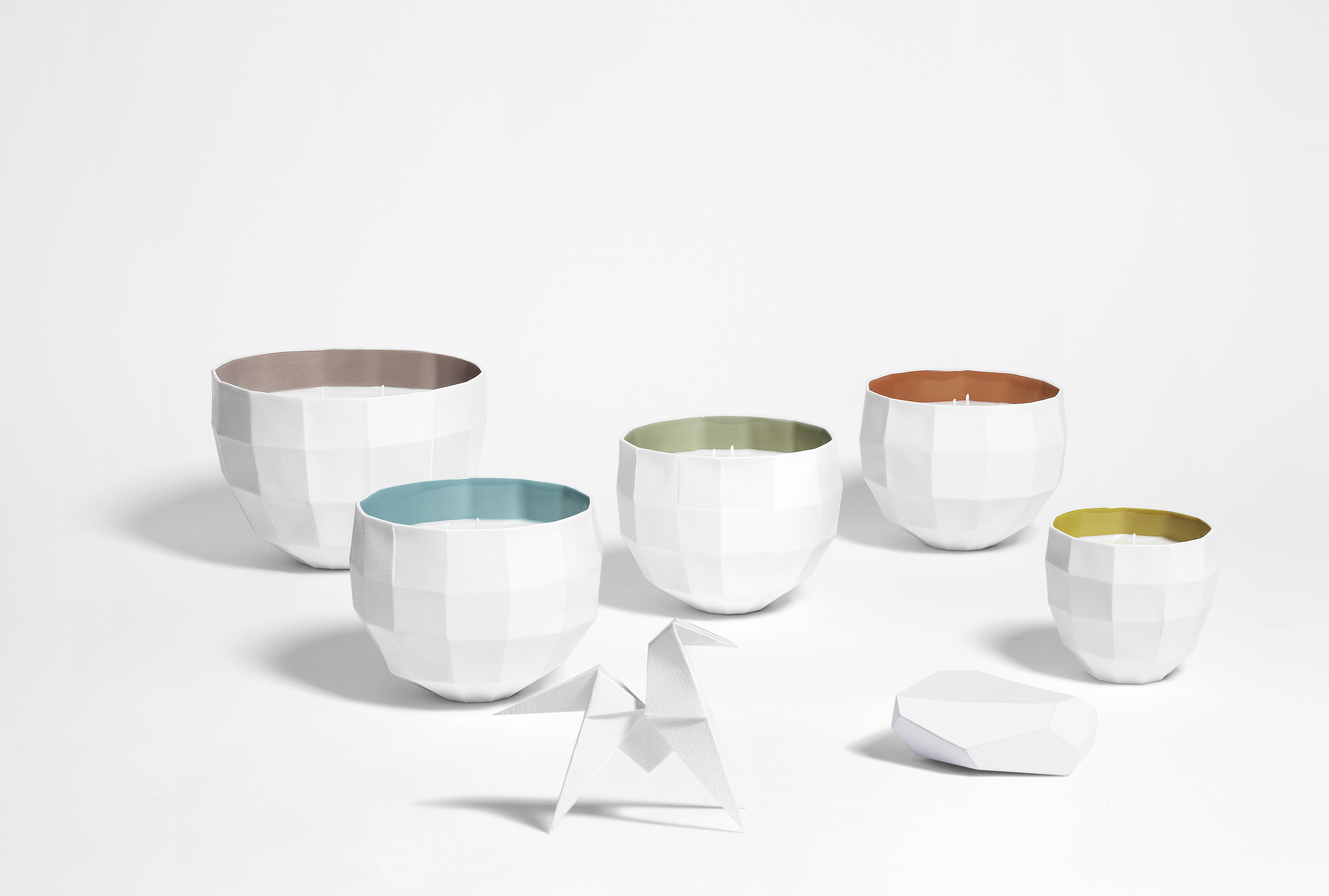 Chaque senteur se décline sous trois objets différents, pensés par le designer Guillaume Bardet. En céramique, qui rappelle les plis du papier, il est possible de choisir entre un cheval en origami et un galet parfumé, ainsi que trois tailles de bougies différentes.