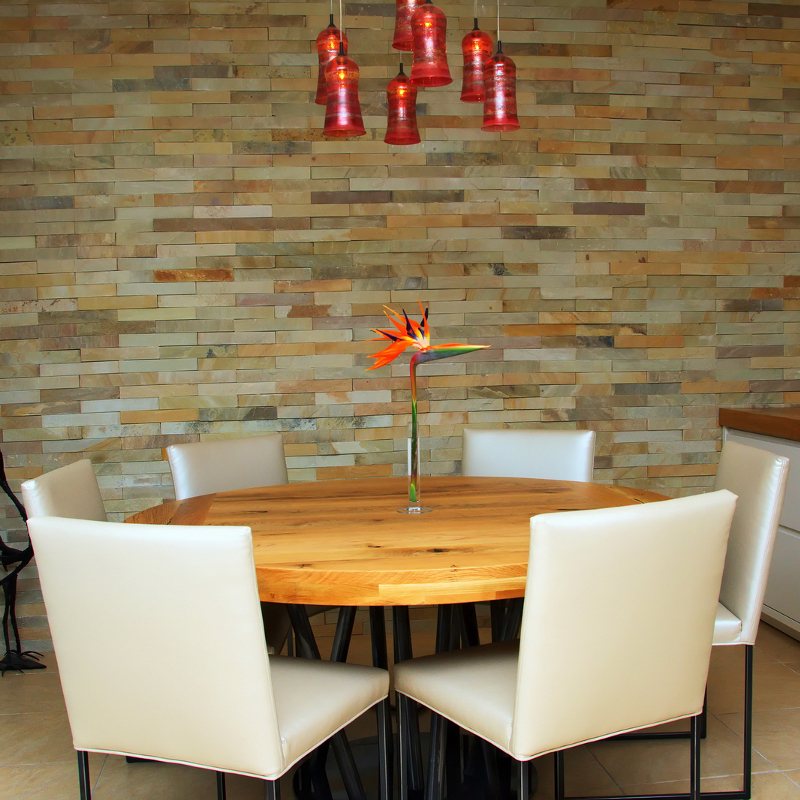 La table ronde dans la salle à manger est plus rare. On voit beaucoup de tables opulentes, carrées ou rectangulaires, qui peuvent asseoir au moins huit personnes.