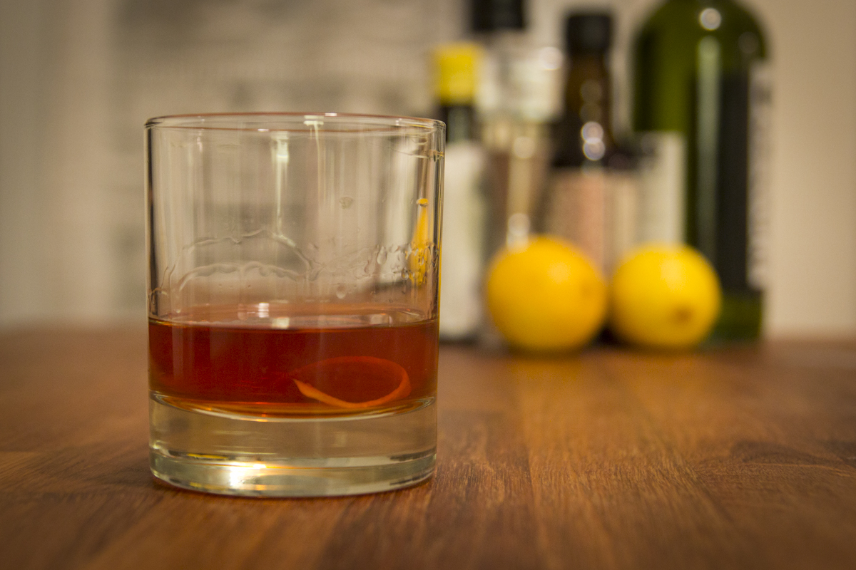 Dans un verre à mélanger, déposez le cube de sucre et imbibez-le des deux amers. À l’aide d’un pilon, écrasez-le pour en faire une pâte rougeâtre. Ajoutez de la glace et le rye. Mélangez une vingtaine de secondes, le temps que le sucre se dissolve. Avec une passoire à cocktail, versez dans un verre préalablement rincé à l’absinthe. Décorez d’un zeste de citron.
