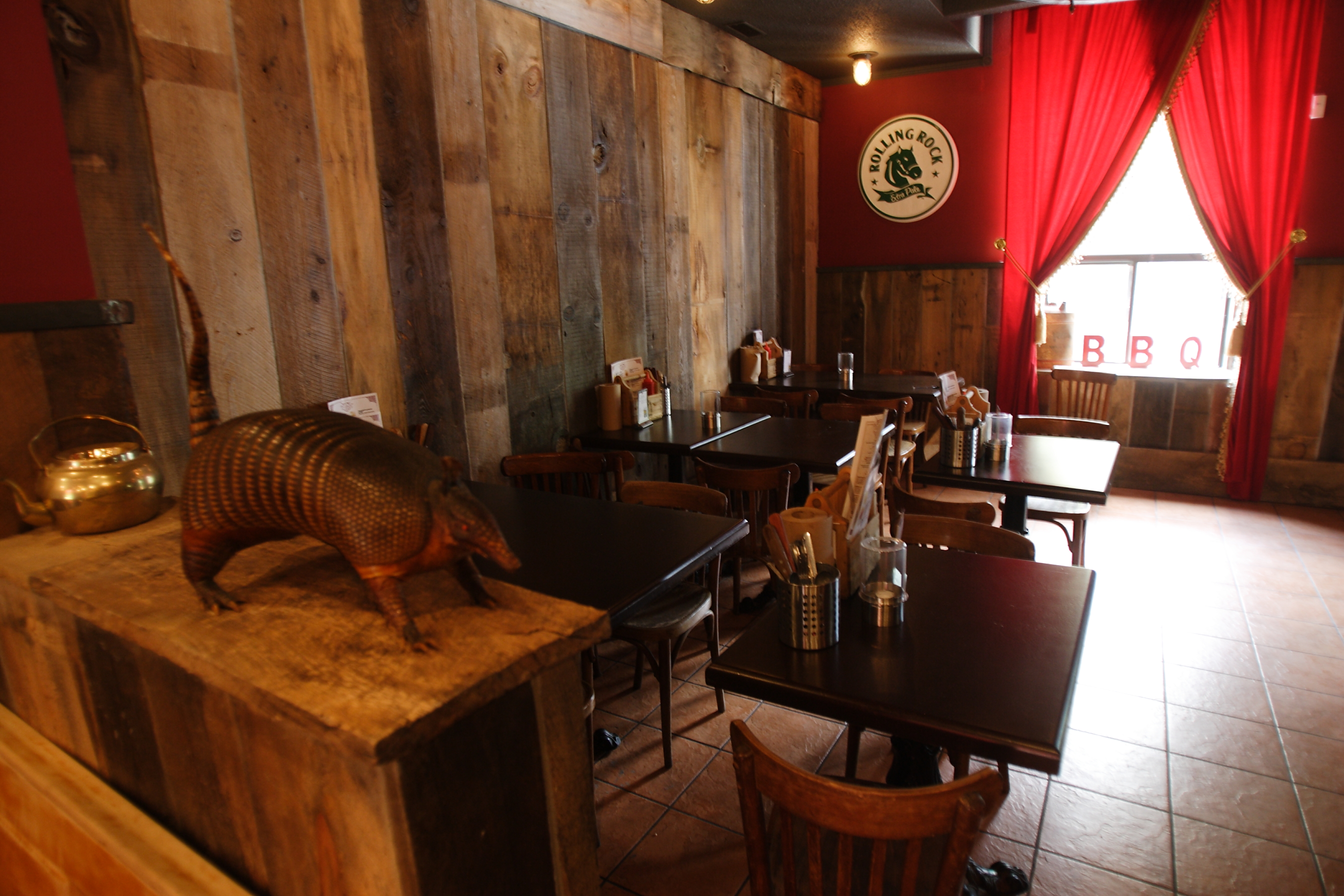 La cuisine du sud-est des États-Unis s’ajoute à la rue Saint-Denis. D’emblée, quand on pousse les portes battantes style saloon du Diablos Smoke House, on entame un voyage dans le temps. La musique blues et country, les deux gars accoudés au bar, la serveuse rockabilly, la vieille roue de diligence qui fait office de lustre, les rideaux de velours rouge, le colt et les petits détails accrochés sur les murs en vieilles planches de bois apportent un côté rustique à l’endroit.