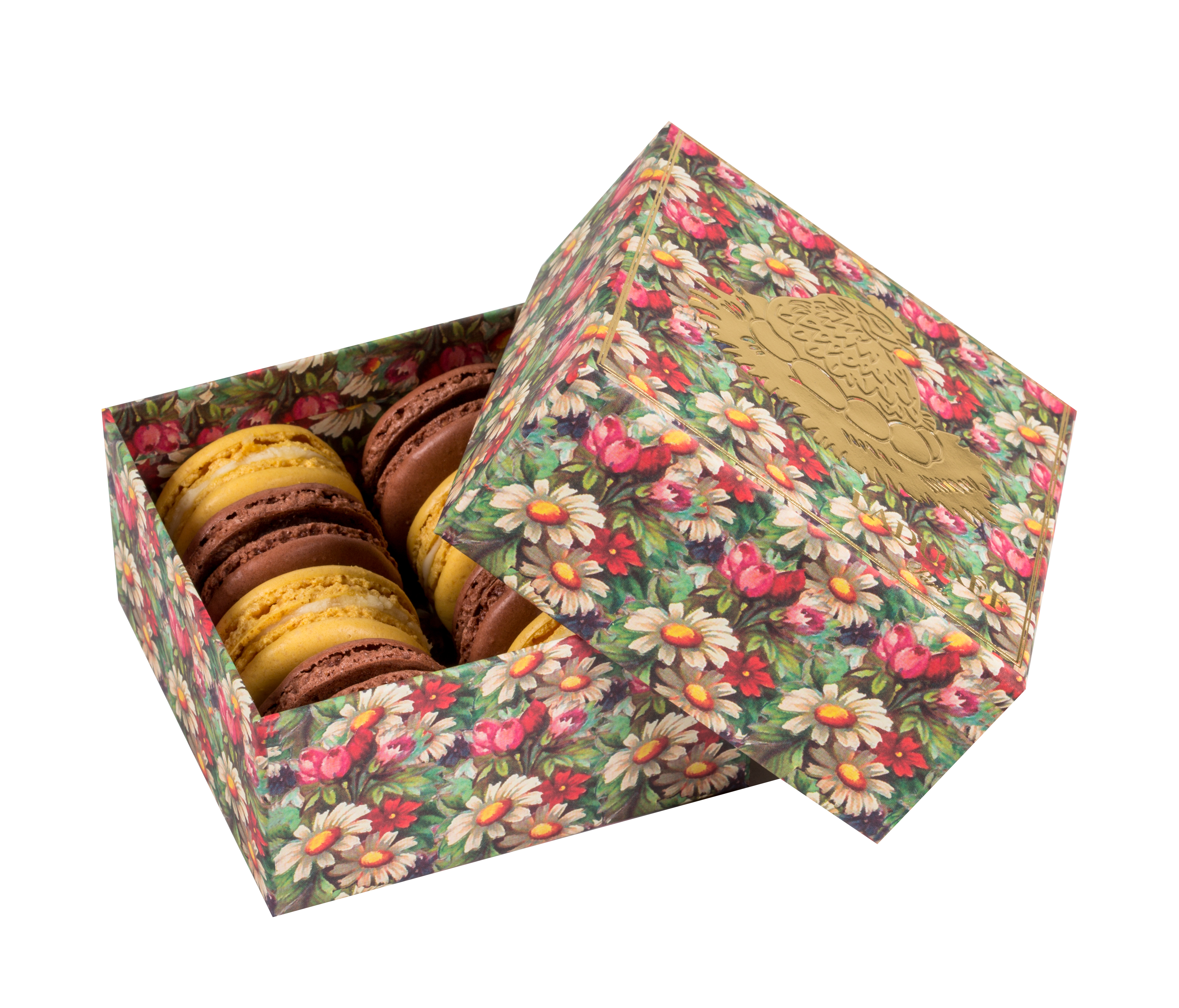 Ladurée: Pour sa collection de printemps, le spécialiste du macaron adopte des goûts fruités et fleuris. Ladurée propose un coffret cadeau en édition limitée contenant huit macarons, dont un nouveau macaron citron-passion. ©Ladurée/AFP Relaxnews