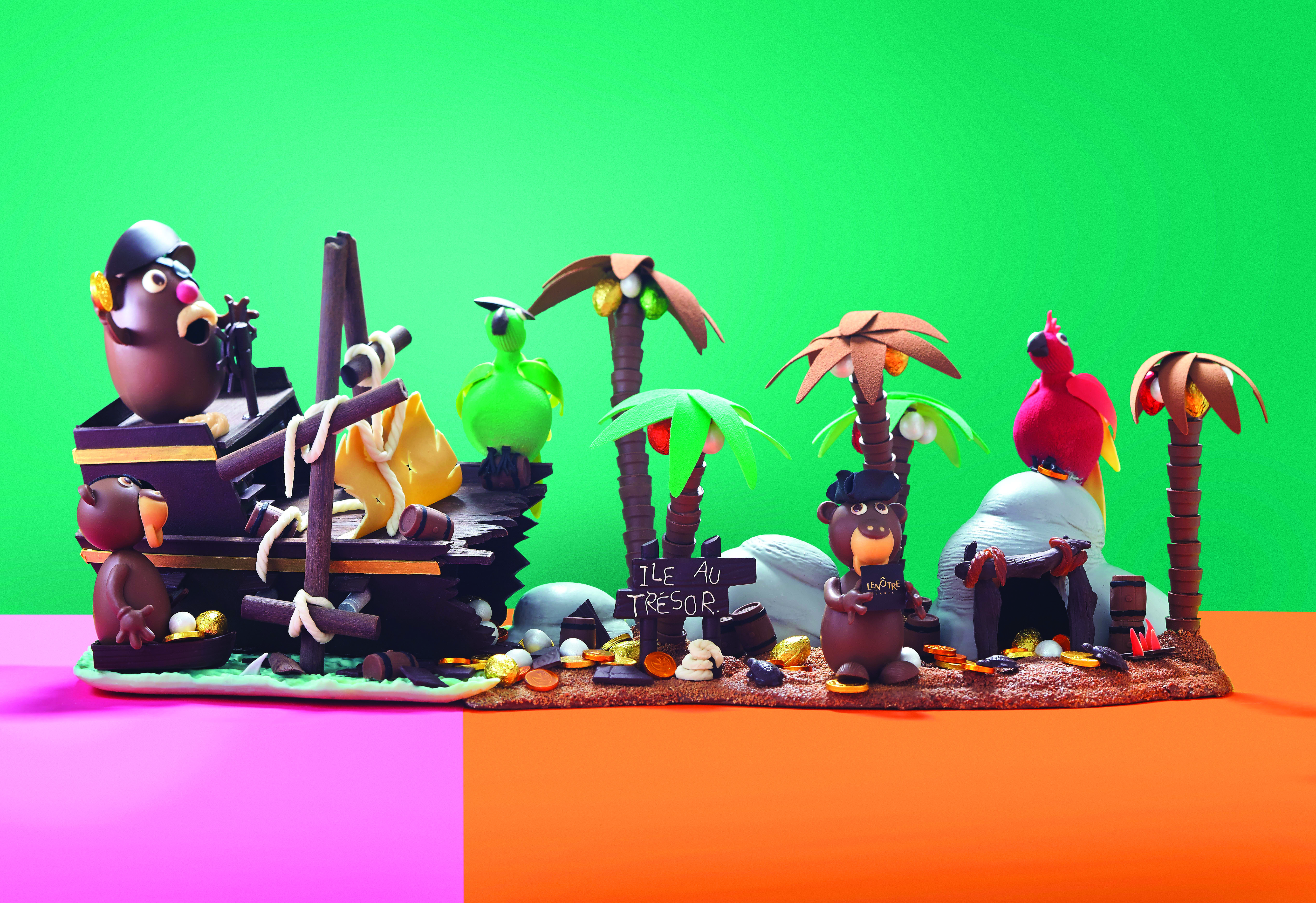 Lenôtre a fait appel au chocolatier Guy Krenzer pour concevoir une collection mettant en scène une île au trésor (7kg de chocolat), sur laquelle a échoué un bateau de pirates. (990€) ©Lenôtre/AFP Relaxnews