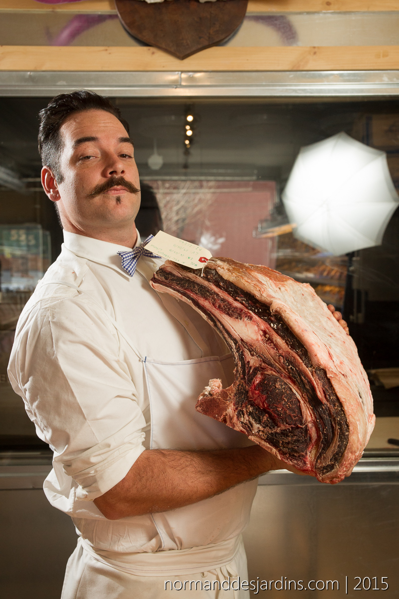 Le maître boucher a parfait ses techniques de boucherie à Paris auprès d’Yves-Marie Le Bourdonnec, une sommité dans le domaine, mais a aussi été très inspiré par les néobouchers nord-américains de New York ou de Portland. Il fait donc autant dans les coupes françaises plus sophistiquées que dans les pièces plus américaines, comme le tomahawk de bœuf vieilli. Celui qui s’est fait connaître comme boucher «nouvelle vague» à l’épicerie fine Latina a ainsi fondé une boucherie à son image, où il peut faire les choses à sa manière.
